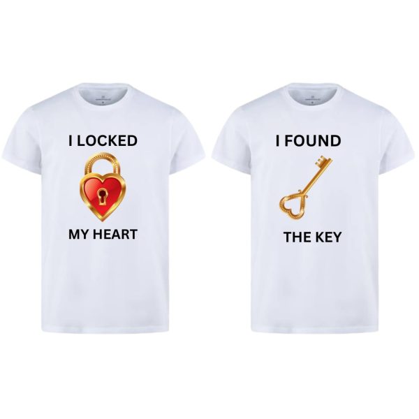 Combo Of My Heart & The Key Style White T-Shirt with Cute Design – Heart & key Design T-Shirts – Best Quality T-Shirts For Girls | T-Shirt For Women – T-Shirt For Men